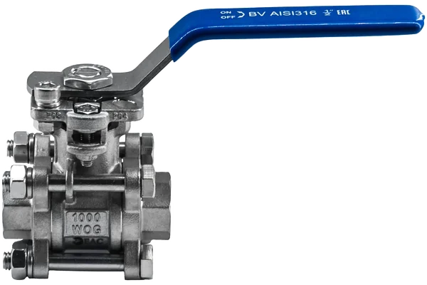 Кран шаровый муфтовый под привод нержавеющий (3PC), AISI304 DN15 (1/2"), (CF8), PN64