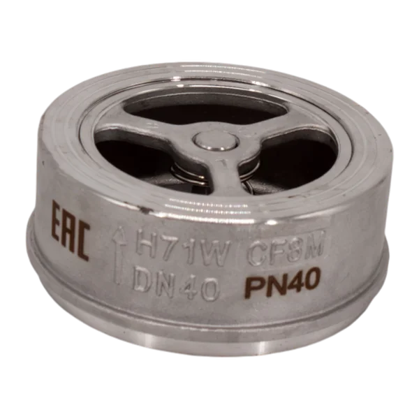 Обратный клапан межфланцевый тарельчатый нержавеющий, AISI304 DN40 (1_1/2"), (CF8), PN25/PN40 предназначен для пропуска рабочей среды в одном направлении и автоматического предотвращения её обратного движения. Он защищает систему от гидроударов, слива жидкости и сбоев в работе оборудования. Такие клапаны работают без участия оператора и широко применяются в системах водоснабжения, отопления, венти...