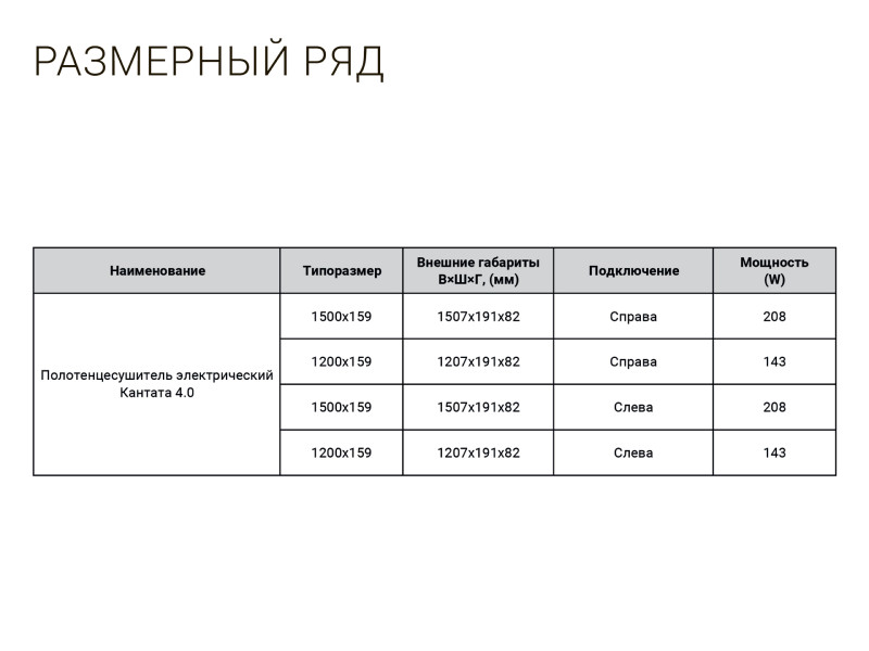 Кабельный полотенцесушитель Кантата 4.0 с регулируемой мощностью до 208W выпускается в 2 типоразмерах, различных по высоте. Модель с лёгкостью справится с обогревом небольшого санузла, а в просторных помещениях – быстро высушит полотенца и избавит воздух от лишней влаги.