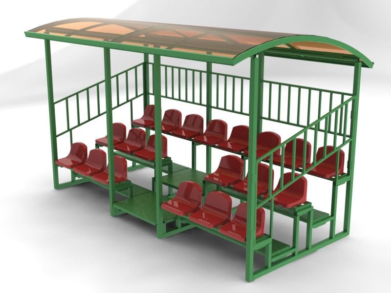 ES3 Быстровозводимая спортивная трибуна 3-х рядная с крышей и ограждениями сзади и по бокам DNN