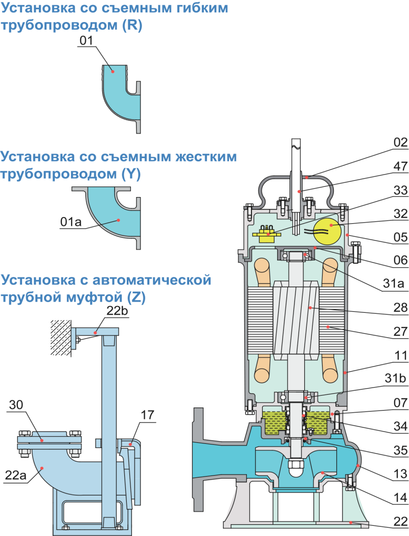 Канализационные насосы SOLIDPUMP BS с канальным рабочим колесом (0.75-1.5кВт 2P, Тип А)