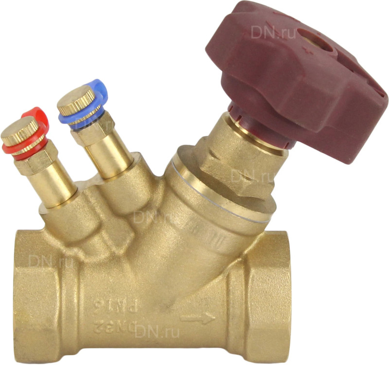 Клапан балансировочный DN.ru VB0000P-T 1 1/4ʺ Ду32 Ру16, корпус - латунь, усиленный, муфтовый (D080-01100)