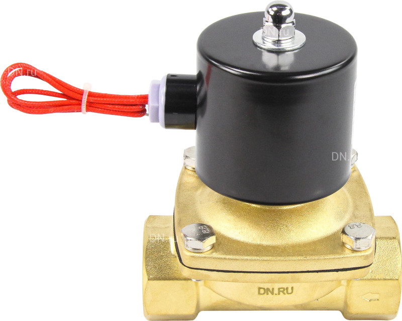 Клапан электромагнитный DN.ru VS100-VT-NC-24VDC 1 1/4″ Ду32 Ру10, соленоидный двухходовой, корпус - латунь, уплотнение - Viton, резьбовой, нормально-закрытый, прямого действия, катушка - 24В (D130-04810)