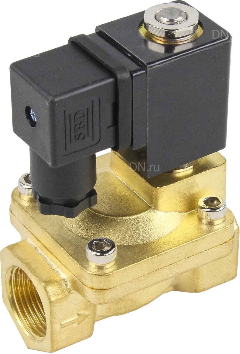 Клапан электромагнитный DN.ru VS400-ET-NC-24VDC 3/4″ Ду20 Ру16, соленоидный двухходовой, корпус - латунь, уплотнение - EPDM, резьбовой, нормально-закрытый, пилотный, катушка - 24В (D130-04720)