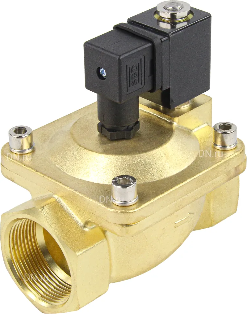 Клапан электромагнитный DN.ru VS400-VT-NC-24VDC 1 1/2″ Ду40 Ру16, соленоидный двухходовой, корпус - латунь, уплотнение - Viton, резьбовой, нормально-закрытый, пилотный, катушка - 24В (D130-04737)