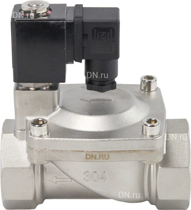 Клапан электромагнитный DN.ru VS431-ET-NC-24VAC 1 1/2″ Ду40 Ру16 пилотного действия двухходовой, корпус - сталь нержавеющая 304, присоединение - внутренняя резьба, уплотнение - EPDM, нормально-закрытый, катушка - 24В AC (D130-05506)