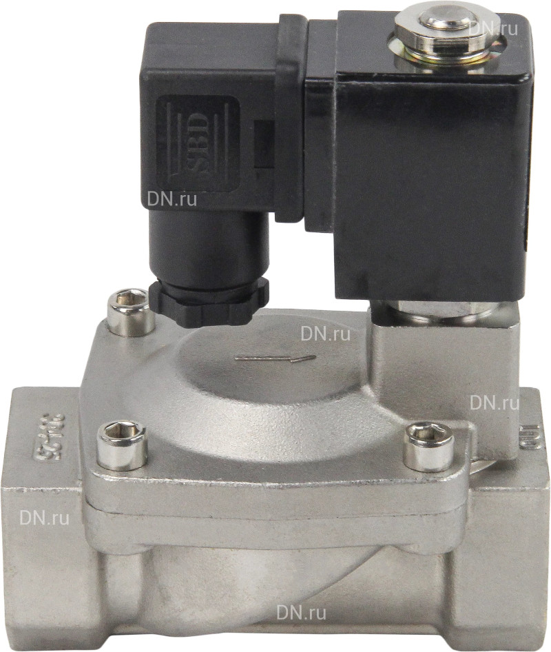Клапан электромагнитный DN.ru VS431-VT-NC-24VDC 1″ Ду25 Ру16, соленоидный двухходовой, корпус - нержавеющая сталь 304, уплотнение - Viton, резьбовой, нормально-закрытый, пилотный, катушка - 24В (D130-04756)