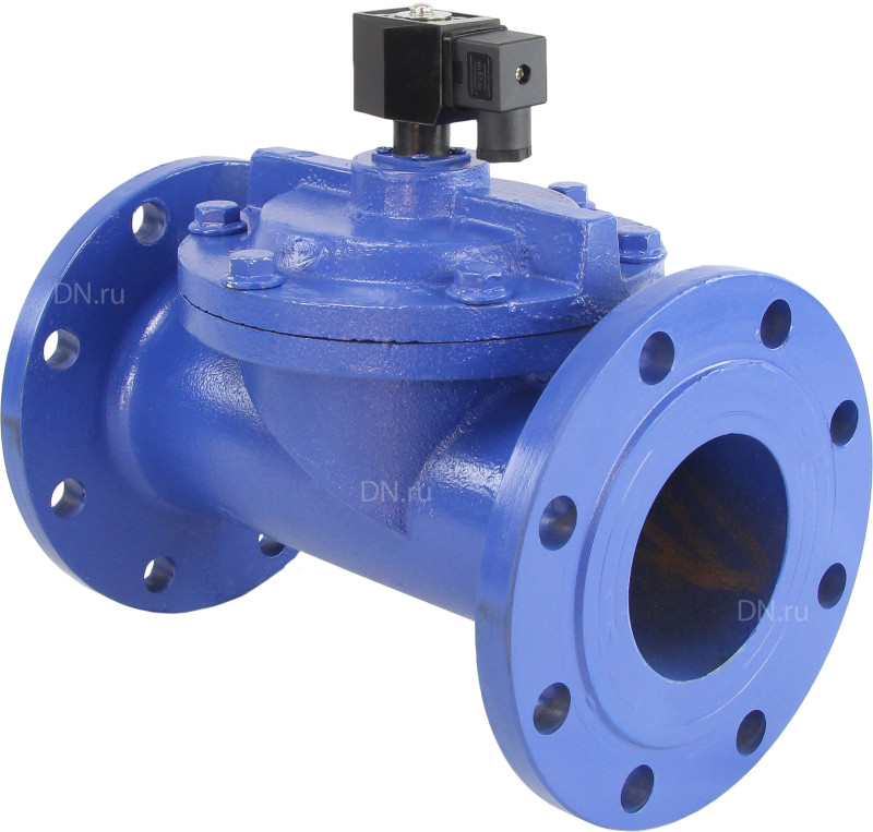 Клапан электромагнитный DN.ru VS610-VF-NC-24VDC Ду100 Ру10, соленоидный двухходовой, корпус - чугун, уплотнение - Viton, фланцевый, нормально-закрытый, пилотный, катушка - 24В (D130-04593)