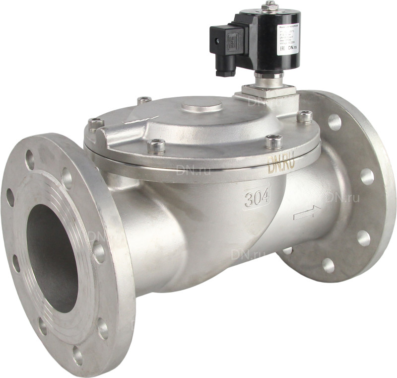 Клапан электромагнитный DN.ru VS631-EF-NC-24VDC Ду100 Ру10, соленоидный двухходовой, корпус - нержавеющая сталь 304, уплотнение - EPDM, фланцевый, нормально-закрытый, пилотный, катушка - 24В (D130-04630)