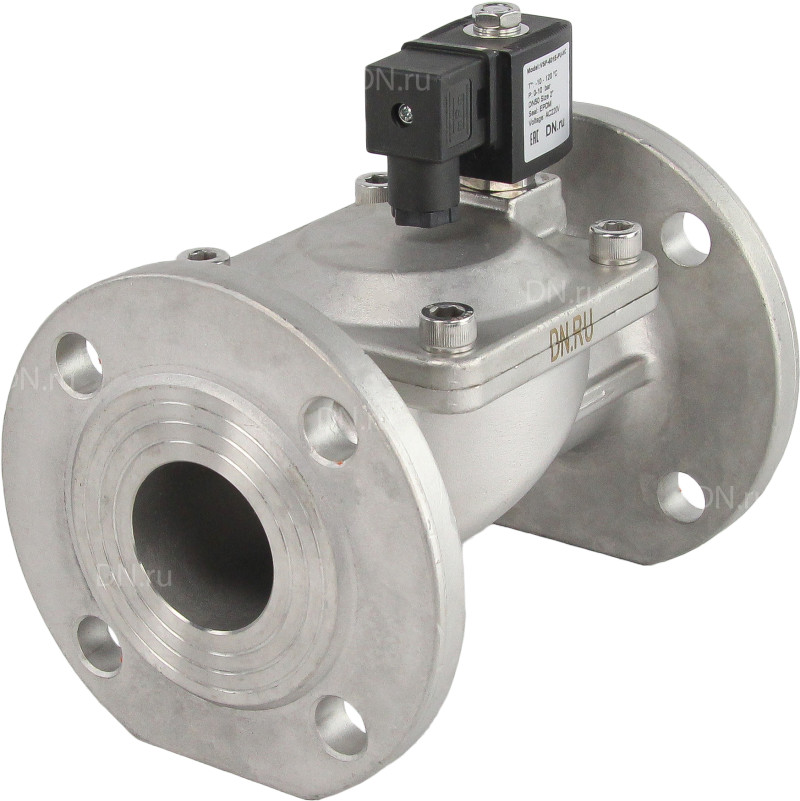 Клапан электромагнитный DN.ru VS631-NF-NC-220VAC Ду50 Ру10, соленоидный двухходовой, корпус - нержавеющая сталь 304, уплотнение - NBR, фланцевый, нормально-закрытый, пилотный, катушка - 220В (D130-04537)