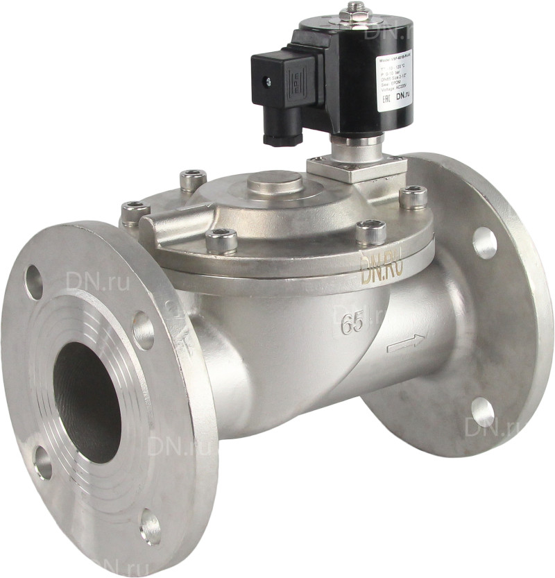 Клапан электромагнитный DN.ru VS631-NF-NC-24VDC Ду65 Ру10, соленоидный двухходовой, корпус - нержавеющая сталь 304, уплотнение - NBR, фланцевый, нормально-закрытый, пилотный, катушка - 24В DAR (D130-05812)