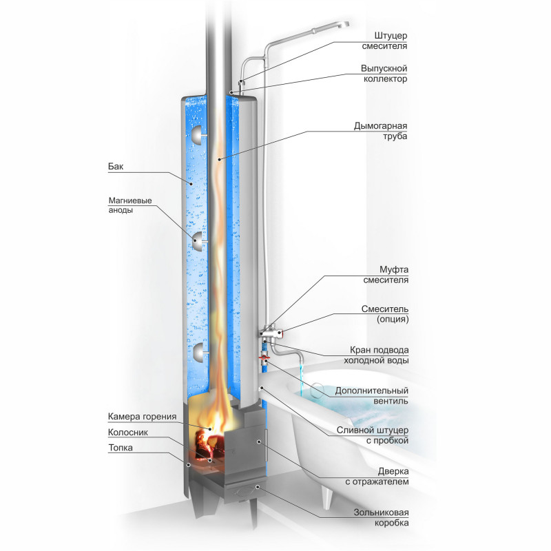 Колонка водогрейная дровянная ЕРМАК КВЛ-90