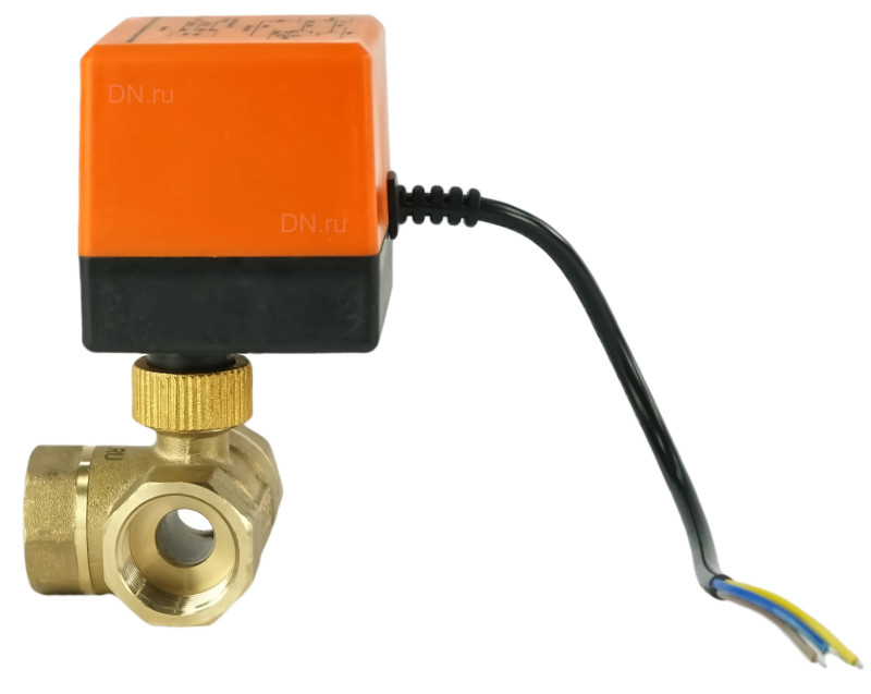 Кран шаровой DN.ru BV0030NP-SP-3L-T-ED Ду20 Ру16 стандартнопроходной, L-тип, трехходовой, латунь, внутренняя резьба, уплотнение - нитриловый каучук / PTFE, с электроприводом 220В без концевых выключателей (D160-22662)