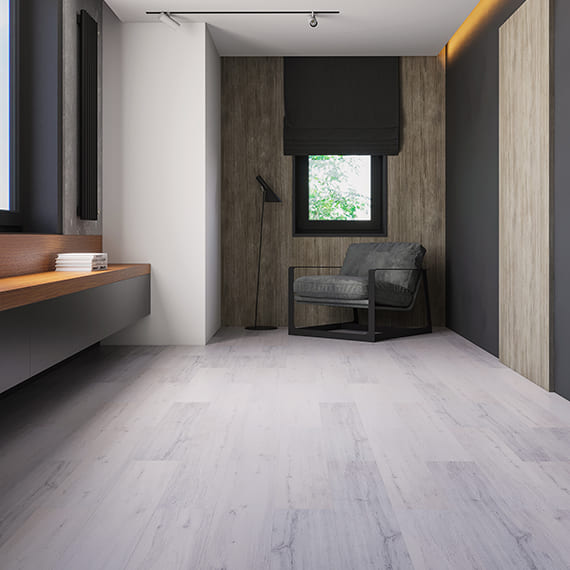 Ламинат «Дуб зимний» — именно тот декор, который воплотил в себе всю атмосферу зимы и первого снега. Прекрасный холодный серо-голубой оттенок этого декора придаст помещению свежести и ощущение приятной зимней прохлады. Немногие знают, но цвет снега, который принято считать белоснежным, на самом деле не совсем белый. Цветовая гамма снега очень разнообразная: от голубовато-серого оттенка до нежно-бирюзового. Ламинат 33 класса «Дуб зимний» толщиной 12 мм из коллекции ORGANIC 33 имитирует структуру строганного дерева.