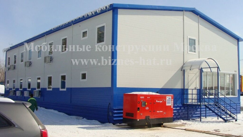 Изделие изготовлено на базе модульных панелей. Условно здание делится на секции. Каждая секция состоит из несущего металлического каркаса и стеновых панелей с минераловатным утеплителем (базальтовое волокно) толщиной 100 мм. Несущий каркас образован панелями основания, угловыми стойками и конструкциями покрытия, связанными между собой на болтовом соединении. Стеновые и кровельные панели закрепляются к каркасу и фермам на саморезах.