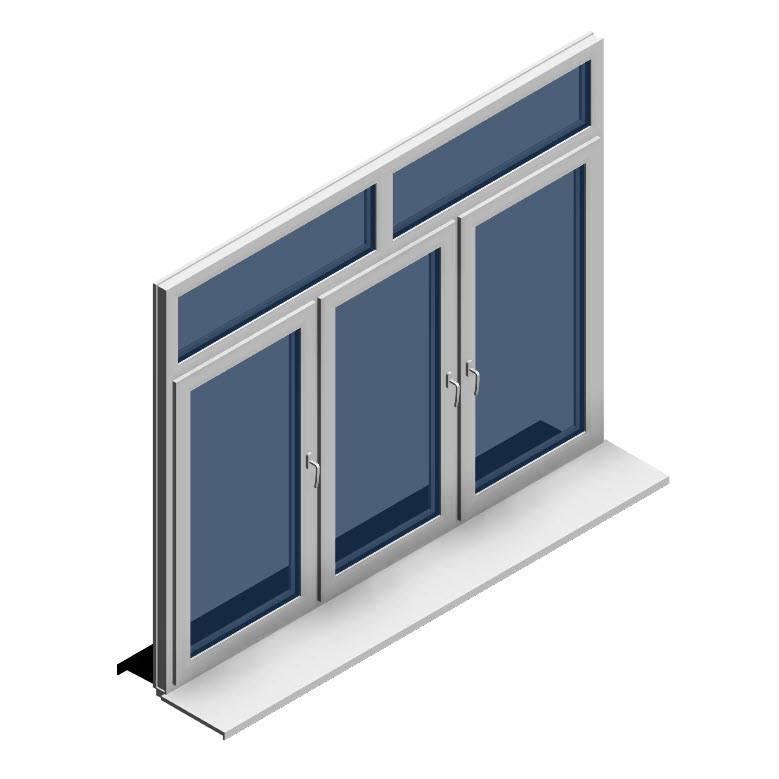 Окно трехстворчатое с двумя глухими частями сверху Grain с разными схемами открывания Grain Premium 76