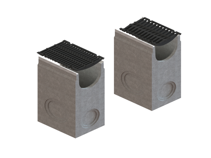 Пескоуловитель является связующим звеном между поверхностным водоотводом и дождевой канализацией. Кроме этого, он собирает песок и мусор, что позволяет предотвратить засорение канализационных труб. Пескоуловитель с гидравлическим сечением 300 мм под решетку класса нагрузки A15, С250, D400, E600 выполнены из фибробетона. Благодаря добавлению в бетон фибры из полипропилена лотки более устойчивы к уд...