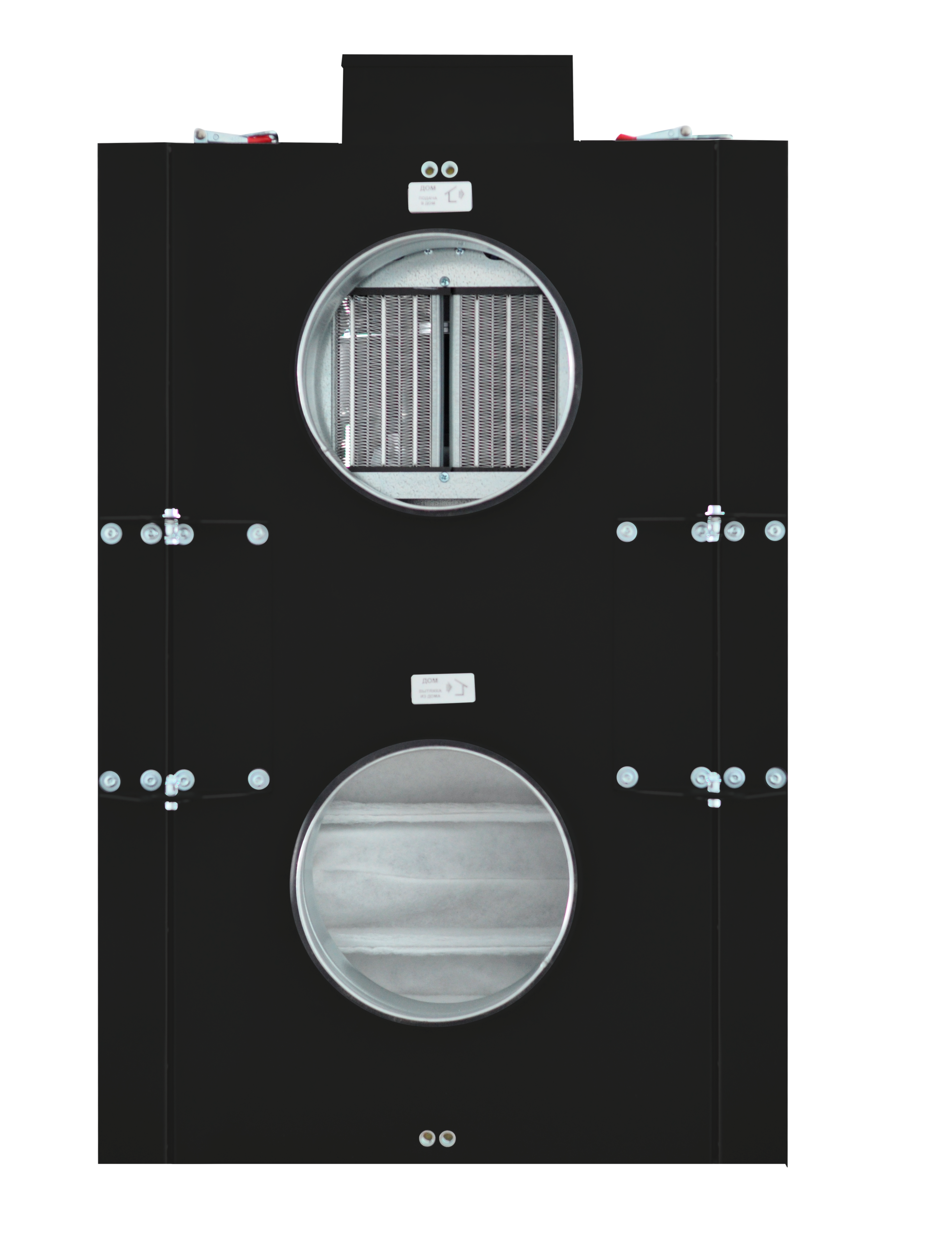Приточно-вытяжная вентиляционная установка с рекуперацией тепла и сохранением влаги. Оснащается электрическим нагревателем и трёхступенчатым рекуператором, который обеспечивает работу без преднагрева при уличной температуре до -35 °C.