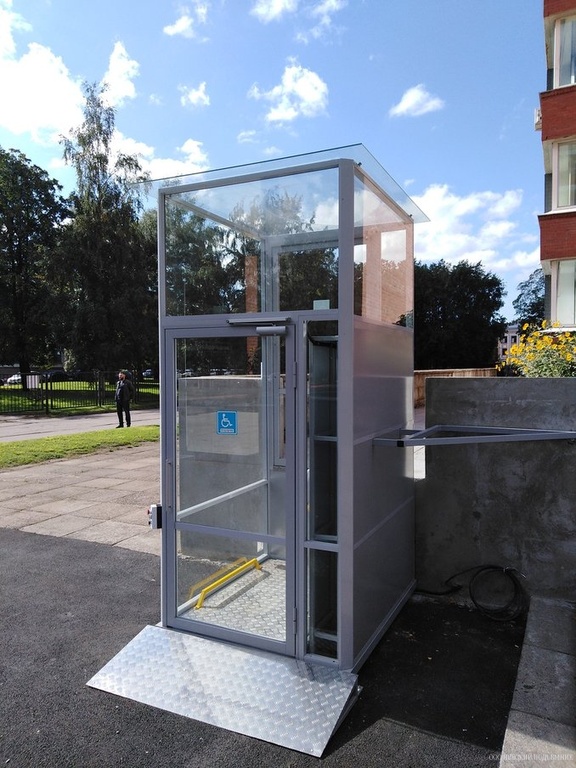 Модель «ЛИФТРОН-4000» - шахтный подъемник для инвалидов и ММГН с вертикальным перемещением. Предназначен для обеспечения доступности в жилые дома, общественные и частные здания. Возможна установка на улице. Максимальная высота подъема до 13 метров.