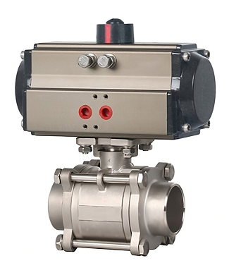 Шаровые краны полнопроходные под приварку с ISO фланцем нержавеющие из AISI316/PTFE, 3PC, ABRA-BV-61, DN8-100, PN40 с пневмоприводом одностороннего или двустороннего действия / SS316 Stainless steel ball valves with pneumatic actuator