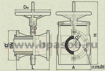 Шланговая задвижка БПА98014, 32а1р1 с принудительным открытием патрубка