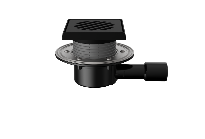 Трап горизонтальный регулируемый серии 510 с чугунной решеткой с чугунным подрамником, без запахозапирающего устройства, с фланцем T 510.1 POsG (арт. 04.038)