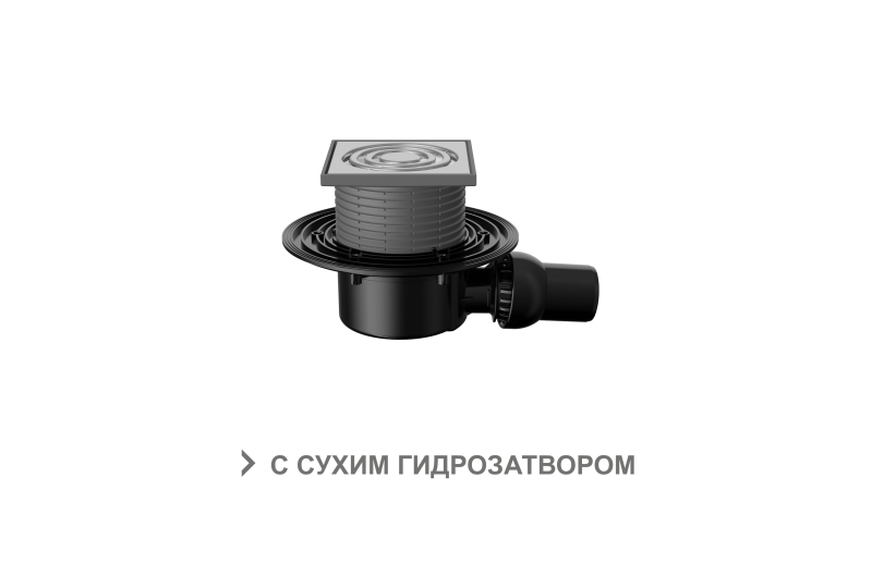 Трап горизонтальный с регулировкой угла отвода серии 520 с нержавеющей решеткой, с сухим затвором, без фланца T 520.0 SDsP (арт. 04.079)