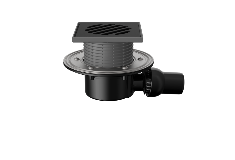 Трап горизонтальный с регулировкой угла отвода серии 520 с чугунной решеткой, без запахозапирающего устройства, с фланцем T 520.1 POsB (арт. 04.046)