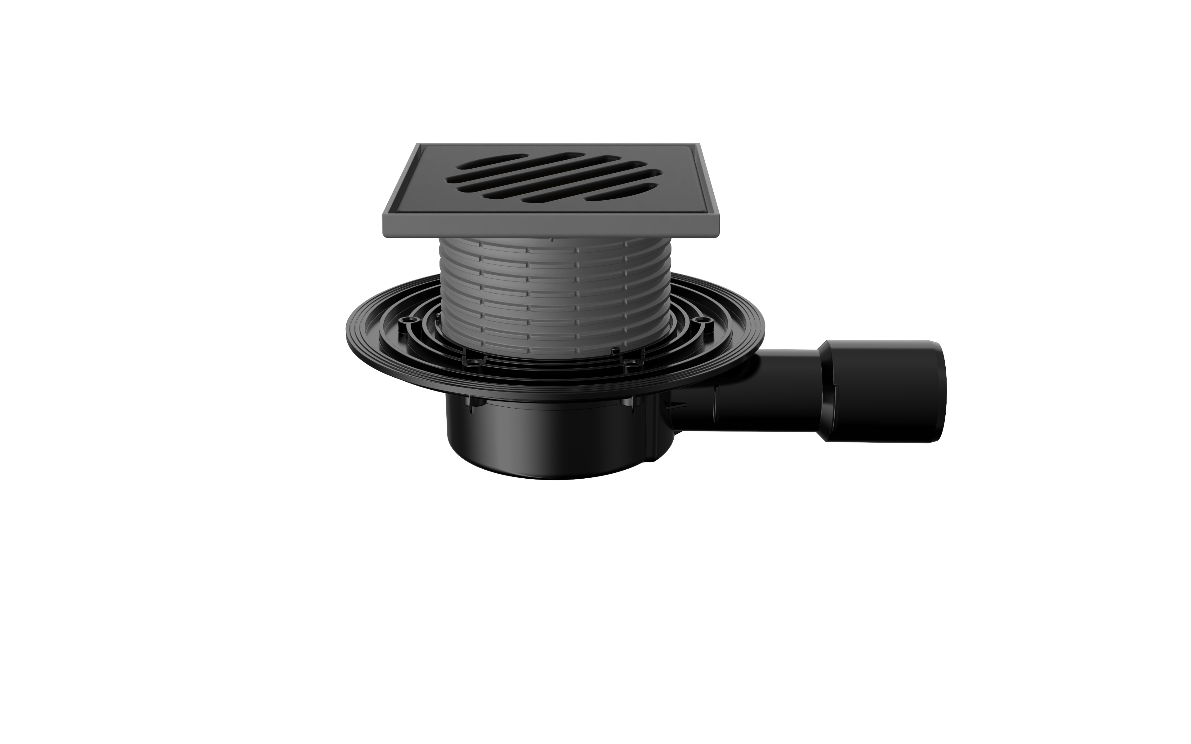 Трап регулируемый T 090.0 PDsB 145x145 горизонтальный выпуск DN40/50 с "сухим" сифоном, решетка чугунная, пластиковый подрамник