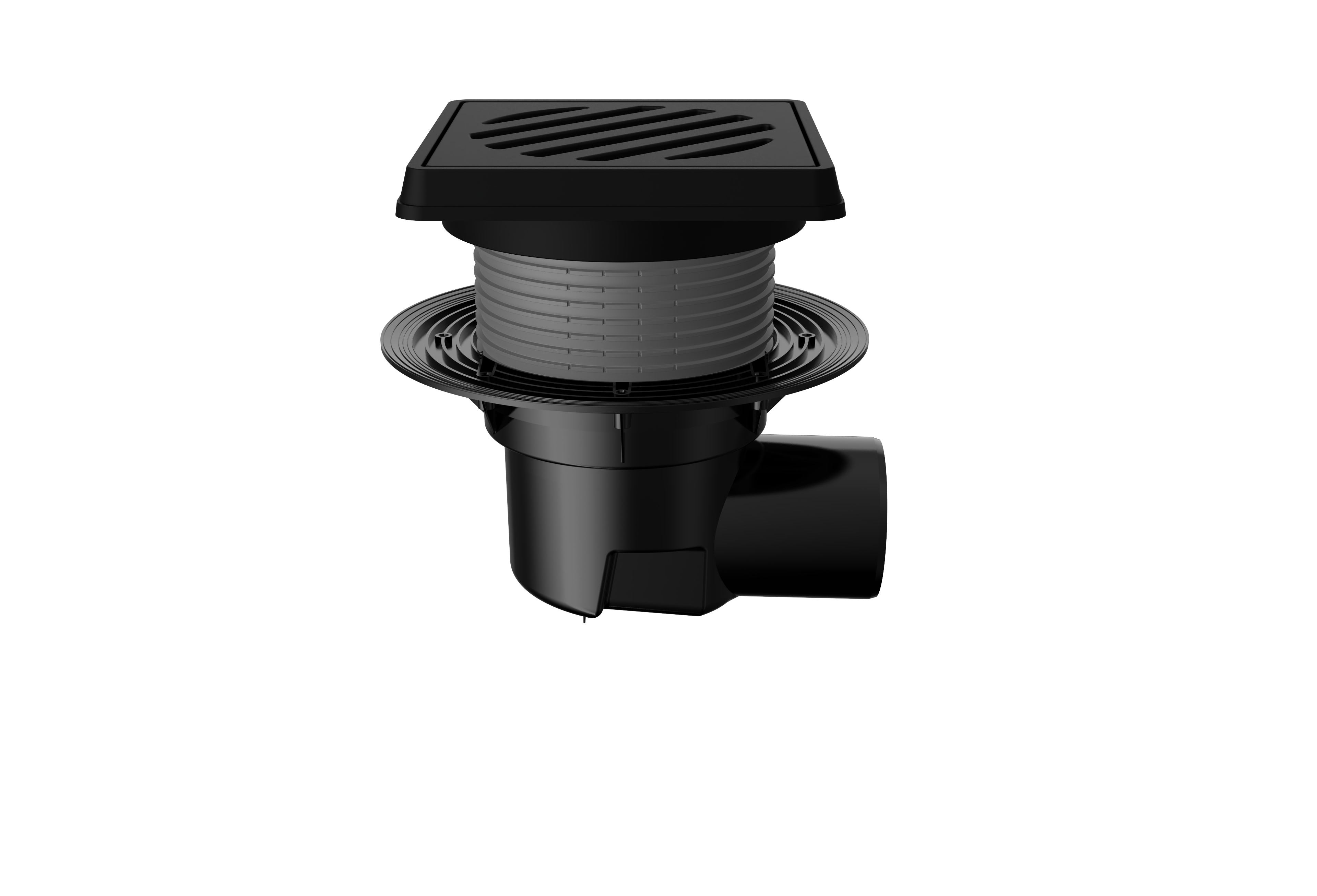 Трап регулируемый T 615.0 PNsG 260x260 горизонтальный выпуск DN 110 с корзинкой и незамерзающим сифоном, без прижимного фланца, решетка чугунная, чугунный подрамник