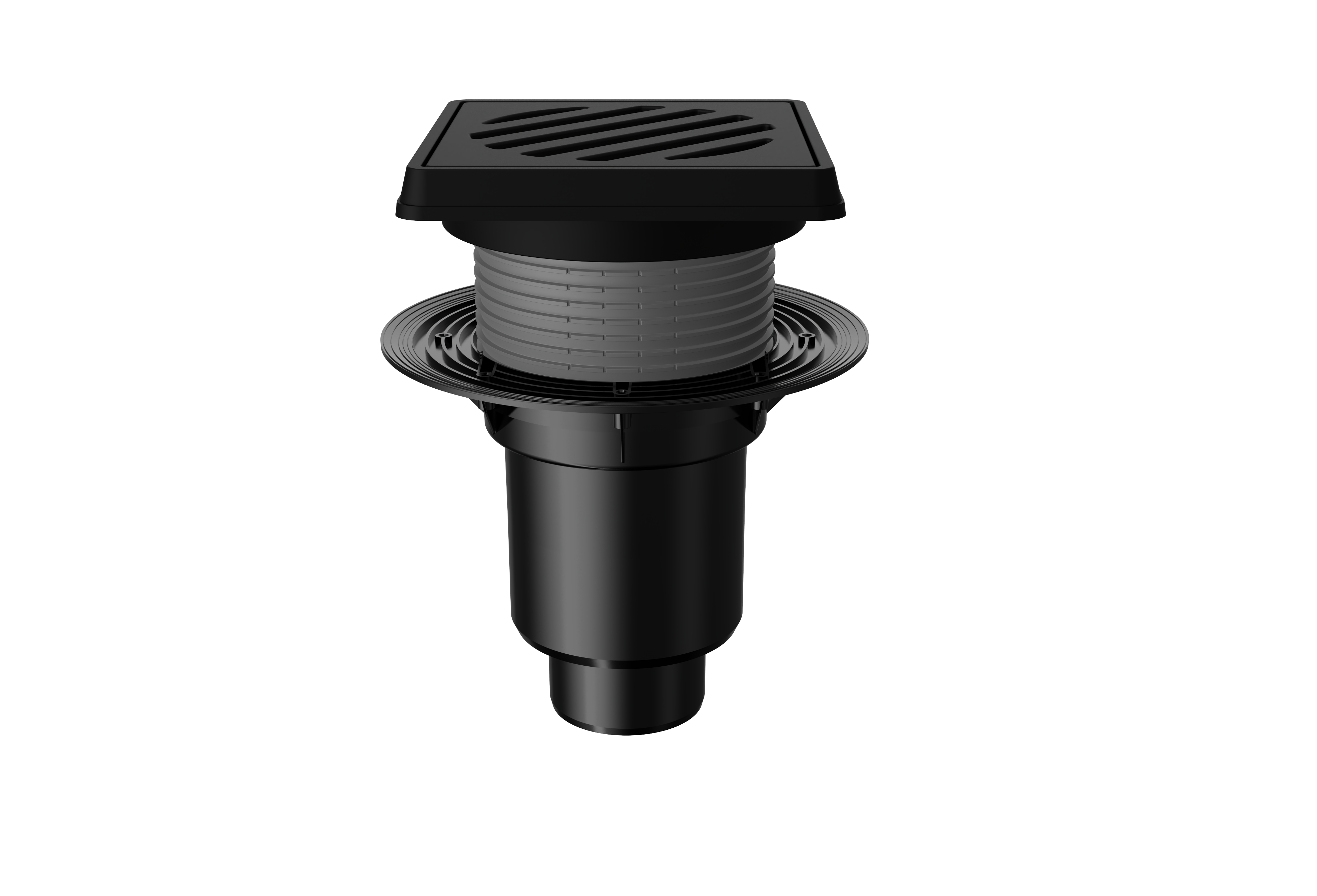 Трап регулируемый T 616.0 PNsG 260x260 вертикальный выпуск DN 110/160 с корзинкой и незамерзающим сифоном, без прижимного фланца, решетка чугунная, чугунный подрамник