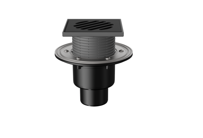 Трап вертикальный регулируемый серии 310 с чугунной решеткой, без запахозапирающего устройства, с фланцем T 310.1 POsB (арт. 04.022)