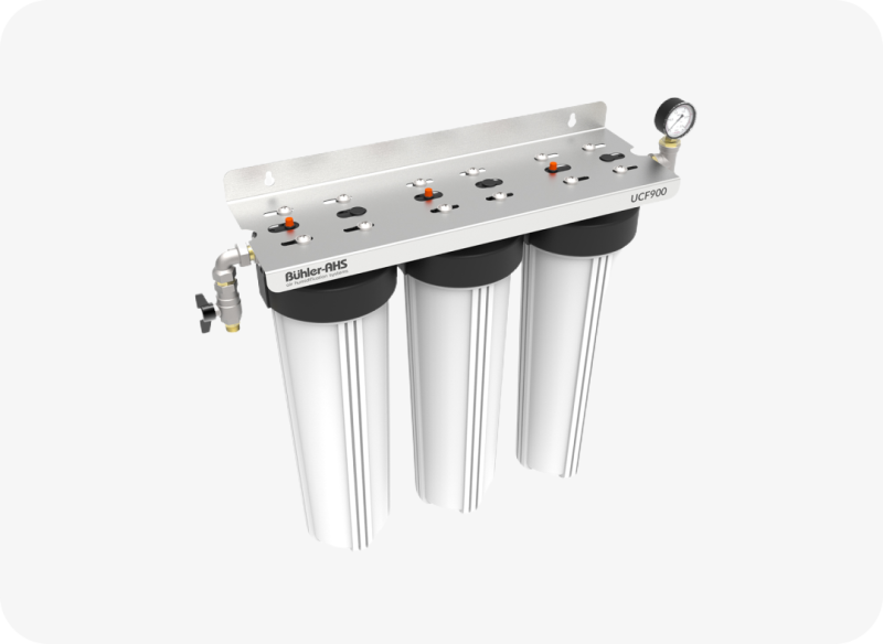 Трехступенчатый фильтр UCF900 предназначен для комплексной предварительной очистки водопроводной воды от хлора, механических примесей и загрязнителей органического/неорганического происхождения, обеспечивая защиту и долговременную работу модуля S18UV. Последняя ступень — ультрафильтрационный картридж с порами 0,1 мкм эффективно задерживает бактерии и коллоидные включения, значительно продлевая сро...