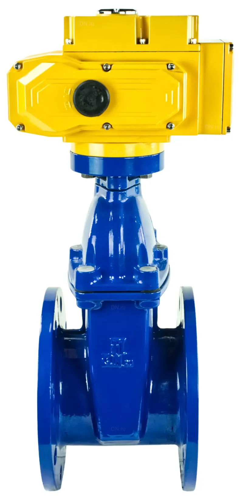 Задвижка клиновая 30ч939р (аналог МЗВ) DN.ru GVWN1414E-2W-F Ду150 Ру16 двусторонняя, фланцевая, клин - обрезиненный, шпиндель - невыдвижной, корпус - чугун, уплотнение - EPDM, с электроприводом DN.ru MT-N-020EM-O1-220VAC-У1 220В, цвет - синий (D040-08373)