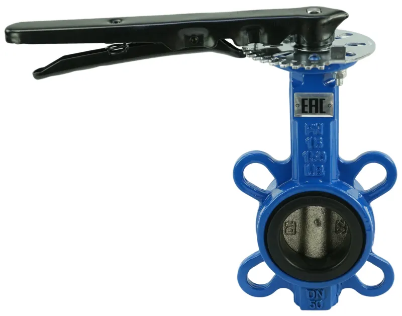Затвор дисковый поворотный DN.ru WBV1413E-2W-Fb-H Ду40 Ру16 межфланцевый, корпус -чугун GGG50, диск - чугун GGG40, уплотнение - EPDM, 9х9, F05, с рукояткой (D050-17251)