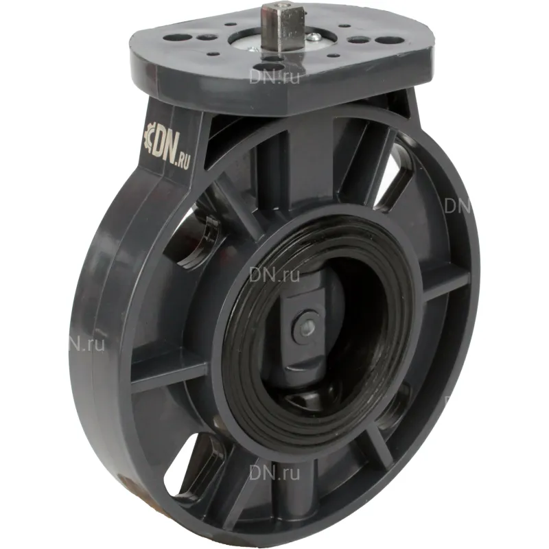 Затвор дисковый поворотный DN.ru WBV4242E-2W-Fb-ISO Дн65 Ру10 межфланцевый, корпус - UPVC (НПВХ), диск - UPVC (НПВХ), уплотнение - EPDM, с ISO-фланцем и голым штоком квадратным (D050-81205)